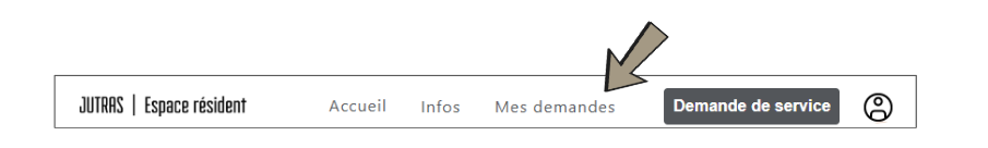 L'Espace résident Jutras vous permet de suivre facilement toutes vos demandes, du moment où vous les créez jusqu’à leur résolution. . Pour y accéder, il suffit de cliquer sur Mes demandes dans le menu situé tout en haut :